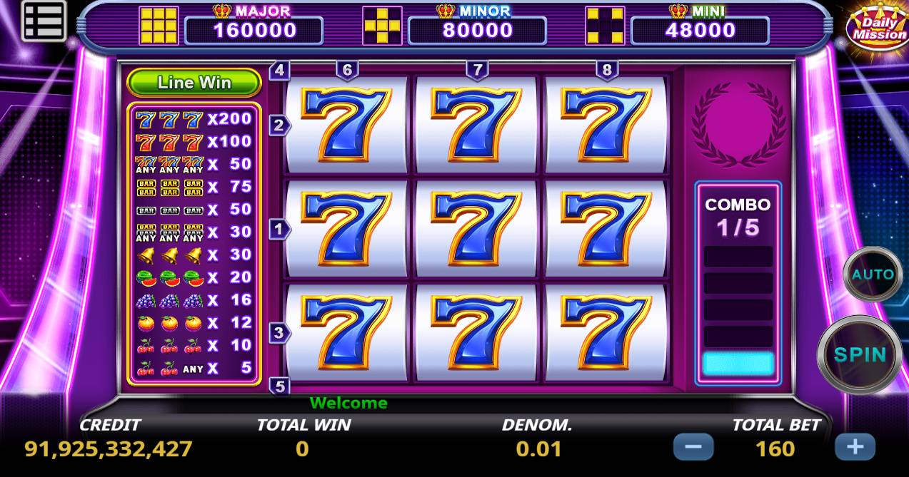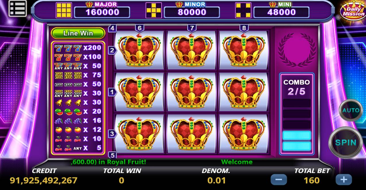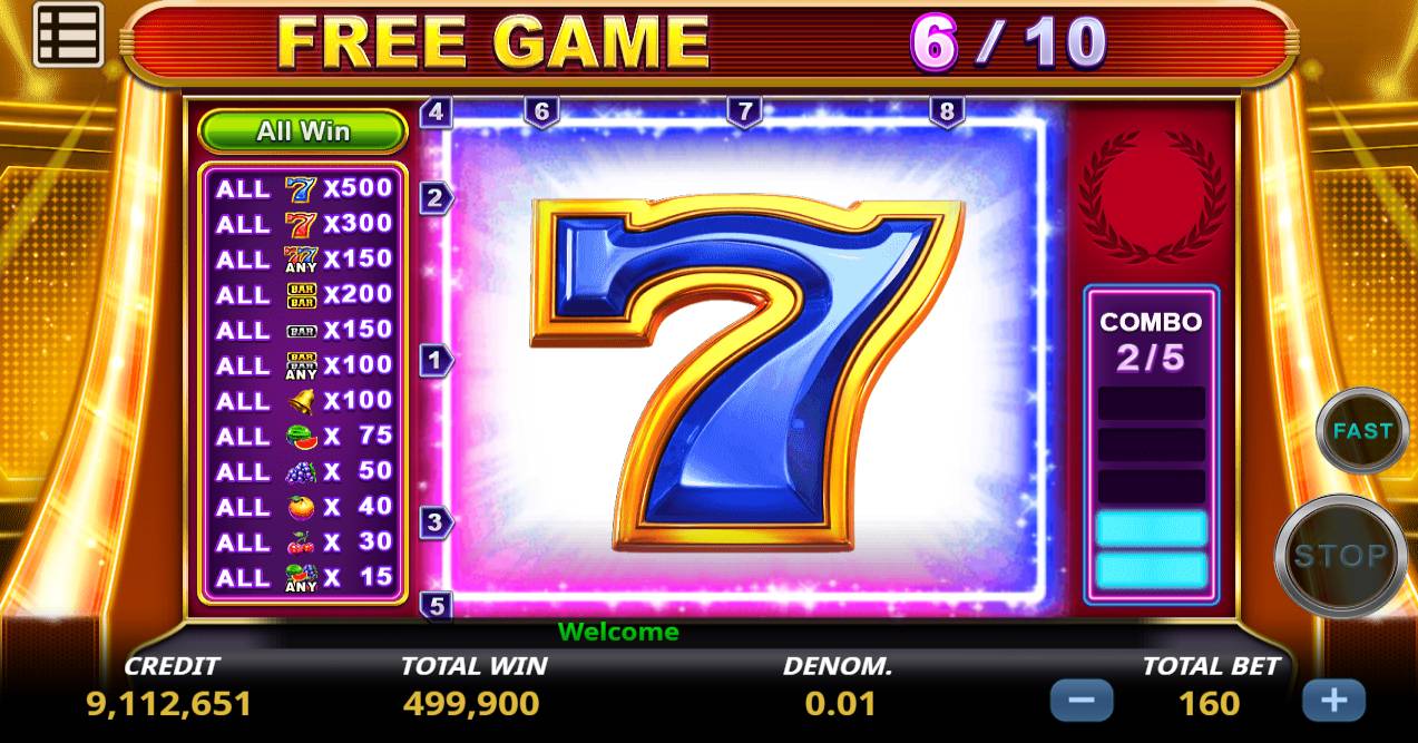 Introduction Classic fruit slot machine.All of a kind prize in a row, up to 6 times at most.Extra bonus multiple in free game. Free play