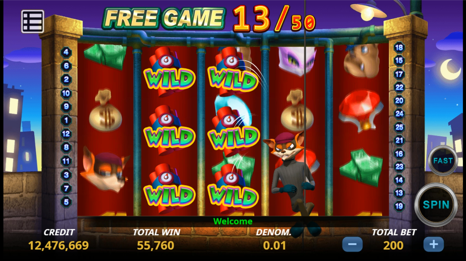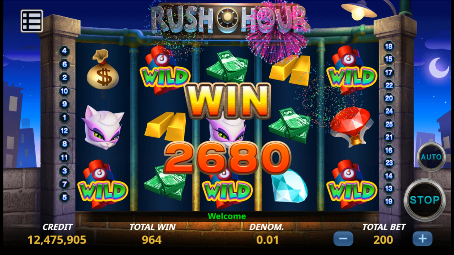 • 5 reels and 25 lines slot game.